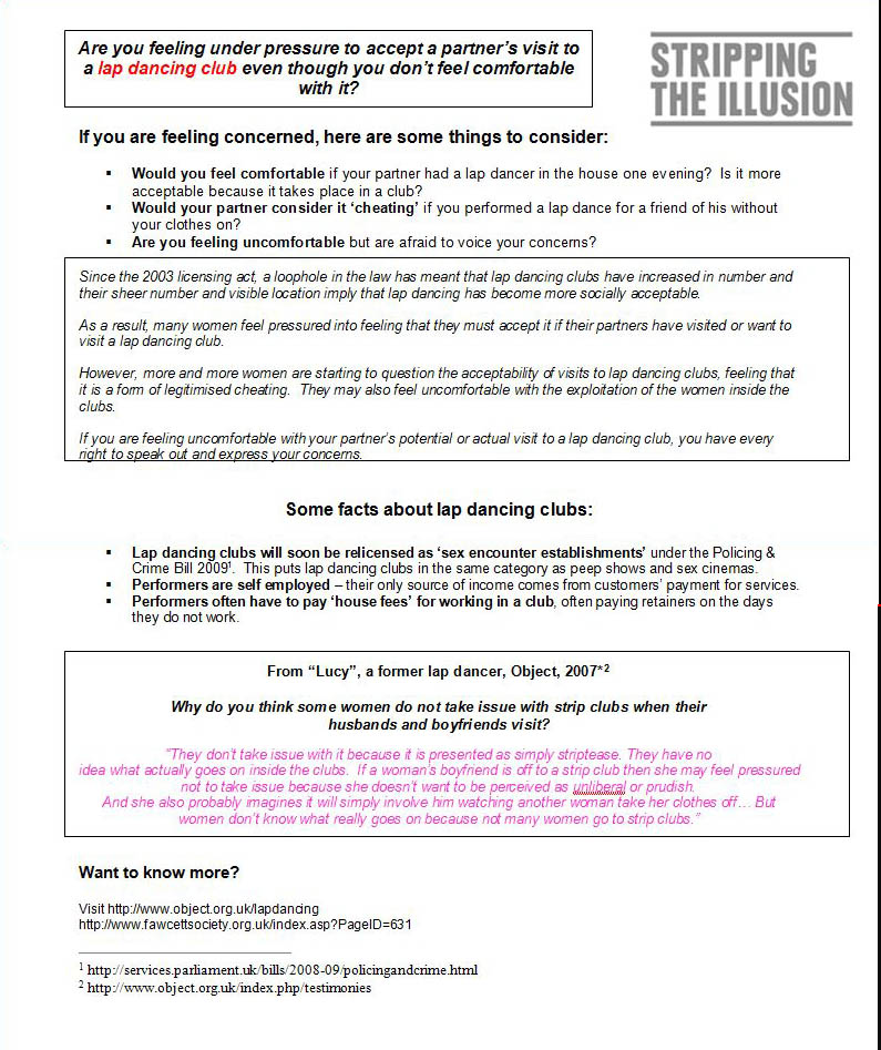 Ok after I stopped laughing at this I thought about it. So they took the Object Logo off, even if they had taken the campaign name off there was still the issue of the Object testimonial and the details saying visit the Object site. To be honest with all that there they would have been better off with the flyer having the object logo. Sooner or later someone is going to do something so stupid that even Object will question the actions (ok that is probably just a dream). What worries me is these small but vocal local feminist network (the smallest one I have heard of is 3 women) make a lot of noise and the council see the the word feminist and panic. The best counter for this is the Union to be honest.